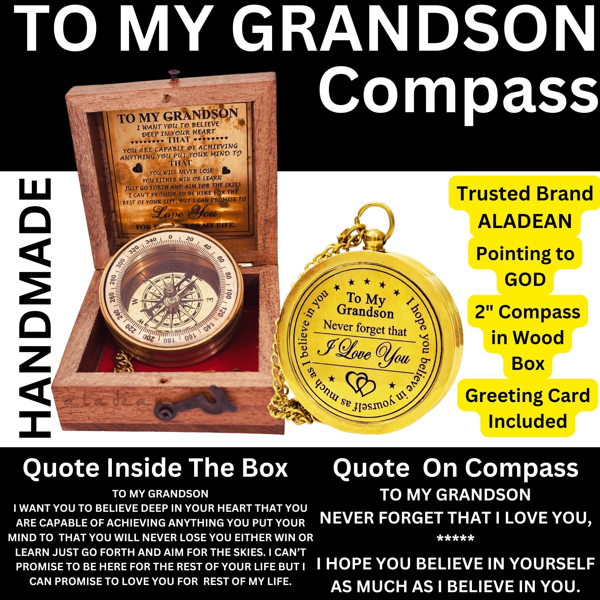 - Perfect Granduation day gift for Teenage Grandson, Unique Christmas Gift for Grandson, An inspirational gift for Grandson's Birthday, A masterpiece for Grandson's baptism or Communion. Make any celebration memorable with your grandson by gifting him this engraved compass