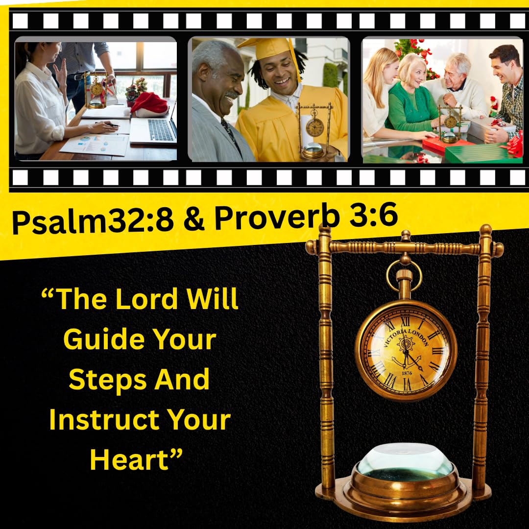 ALADEAN Lord Will Guide You Vintage Table Clock Compass - Psalm 32:8 Proverb 3:6 Engraved Inspirational Religious Gift Desk Clock for Men Women Boy Girl Baptism Graduation Communion