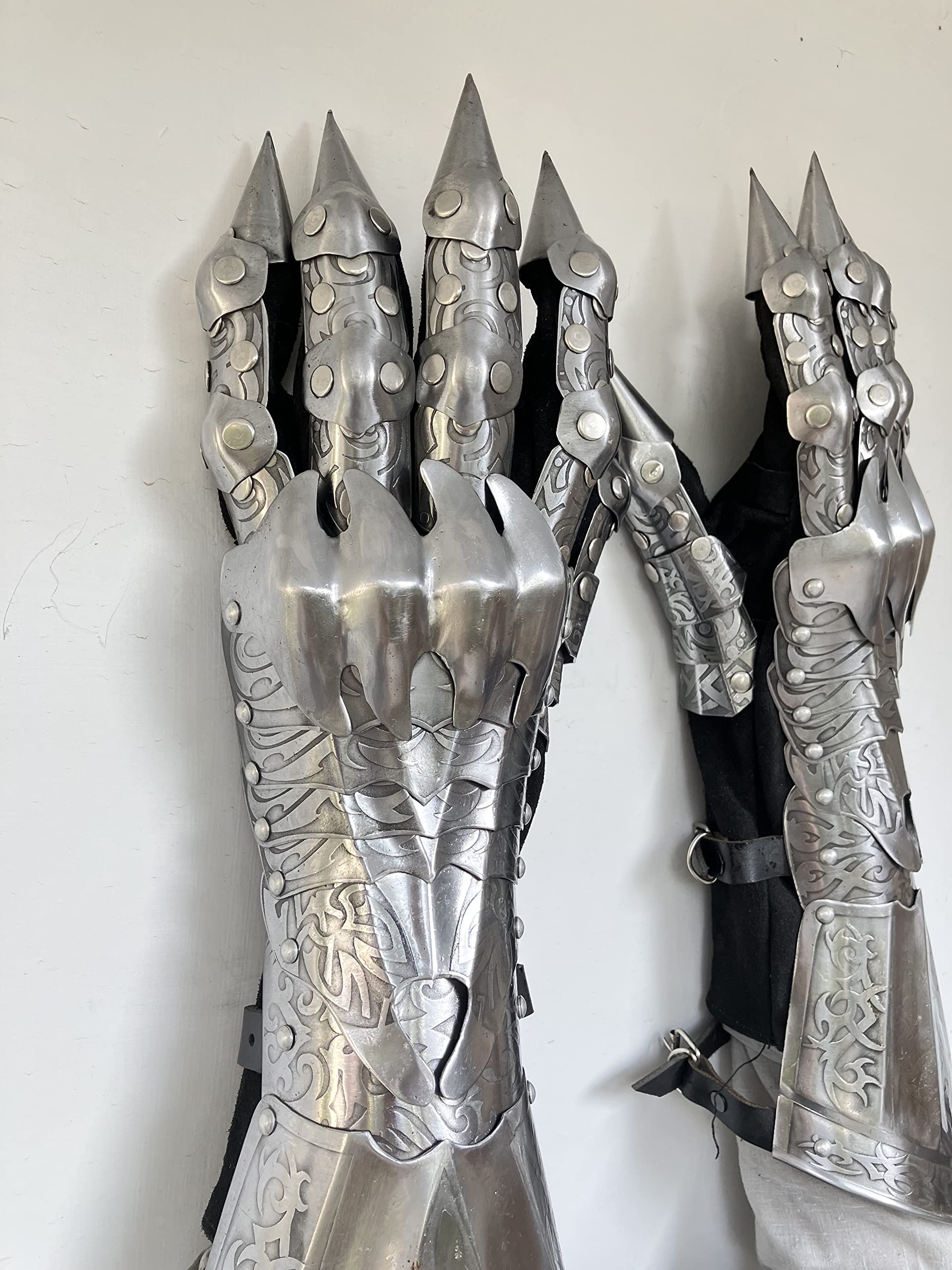 - Handforged in 20 Gauge Mild Steel with attached Faux Leather Gloves to make it easy wearing cosplay costume