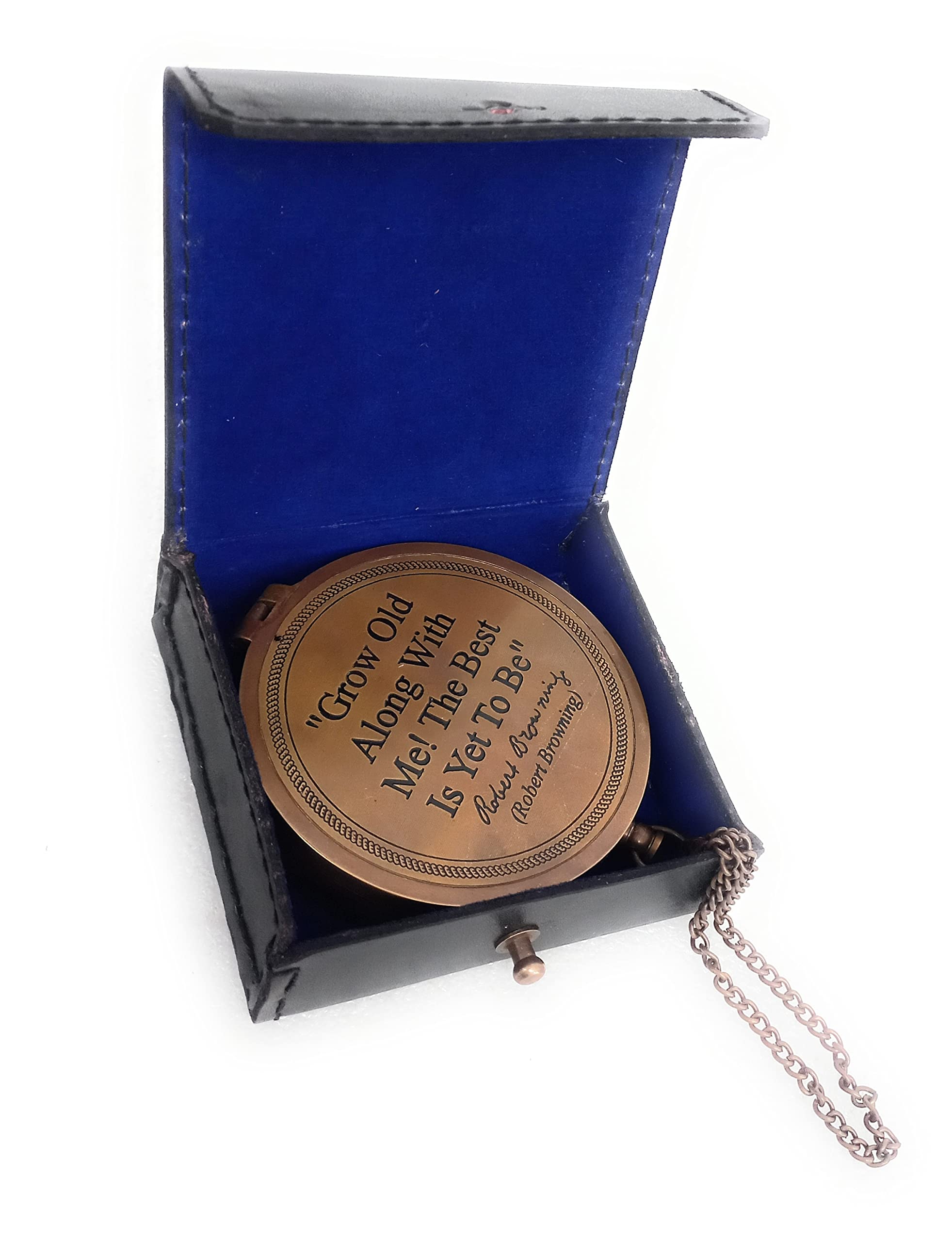 Gift for Husband Wife - Brass Compass 2" | Engraved Quote Birthday Wedding Anniversary Christmas Romantic Love Gifts idea for Boyfriend Girlfriend Men Women Him Her (Grow Old Along with Me)