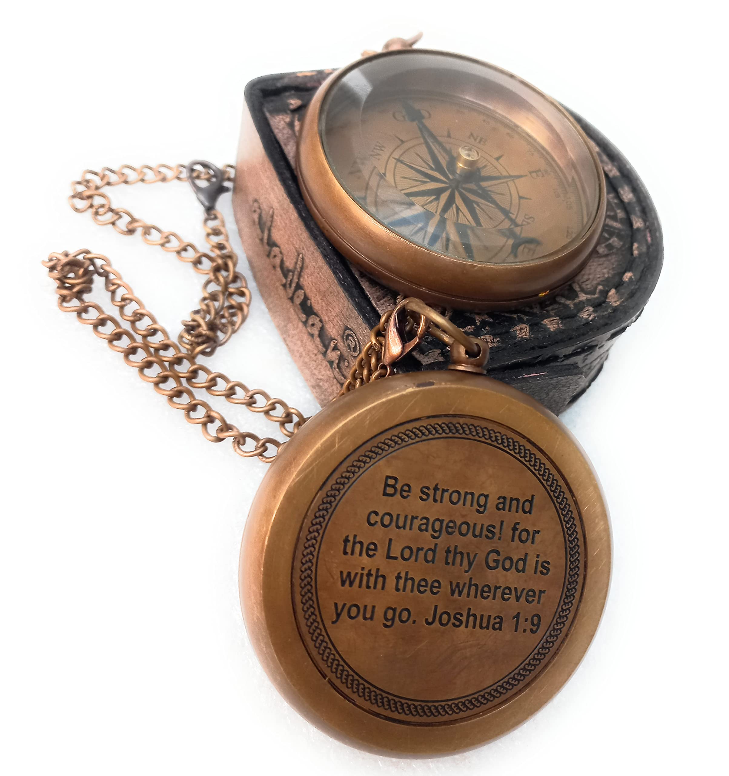 - Directional compass seeking Guidance from GOD - engraved Be Strong & courageous Joshua 1:9 on functional compass, Pointing to path of GOD compass