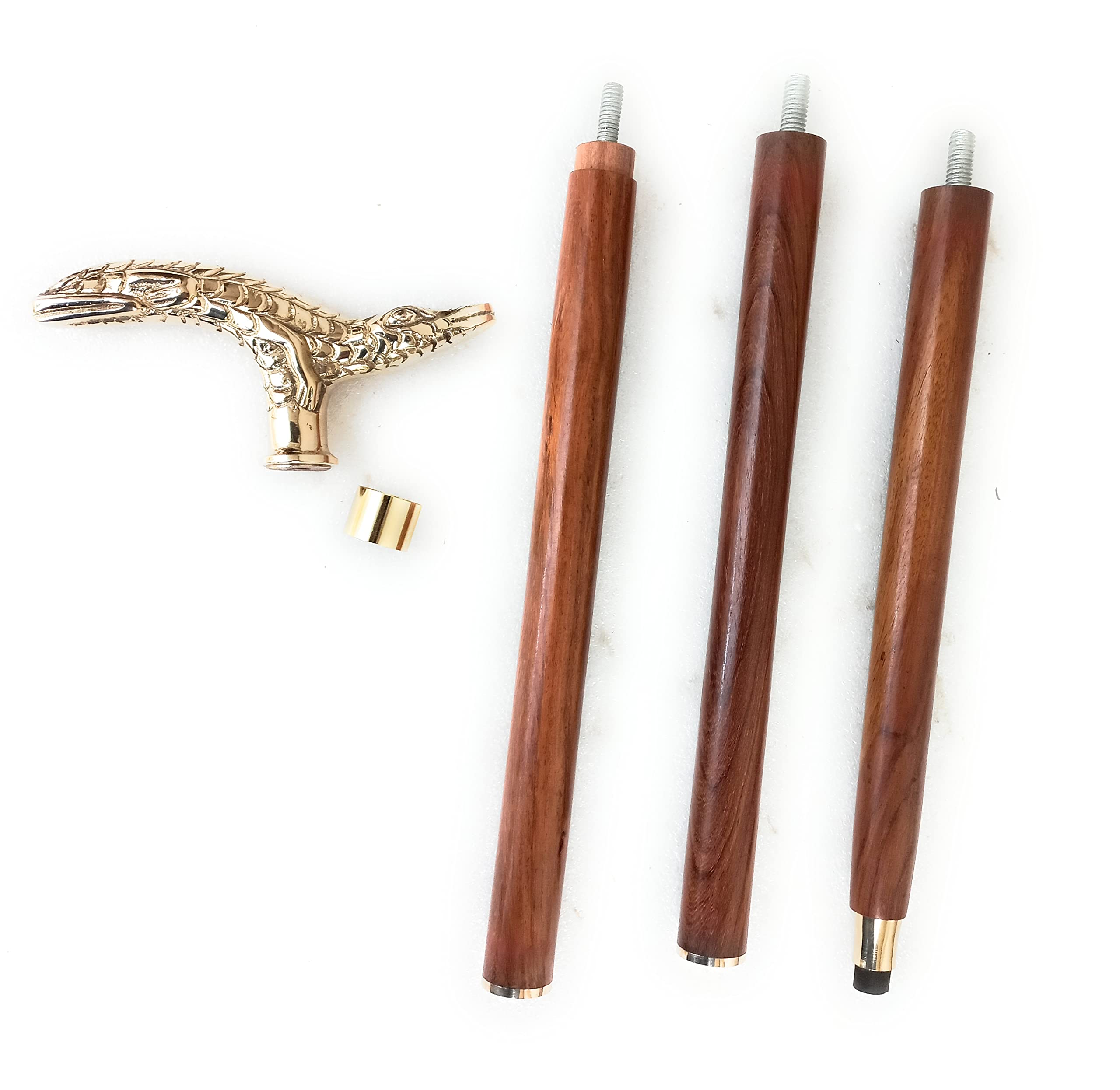 - Solid Wood Walking Cane with Brass Handle : 3 Fold construction with brass accents and handle , each section is approximately 11 inch. when all the three sections are joined you get a 36 inch long walking stick with a brass handle. If you attach only 2 sections you get a 24 inch swagger rule walking cane.
